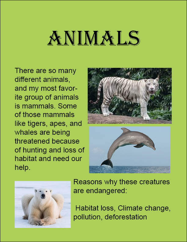 This Animal Newsletter is one example of my original work. I love the topic on animals, and hate to see them get hurt, so I made this in InDesign. I mostly explained about the endangered animals, and the reasons why they are endangered. I used links and images of foundations that are doing they’re part in saving these creatures.